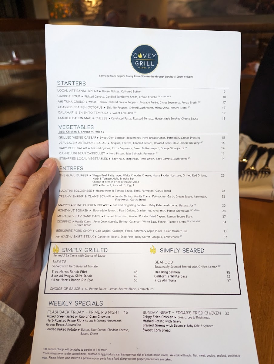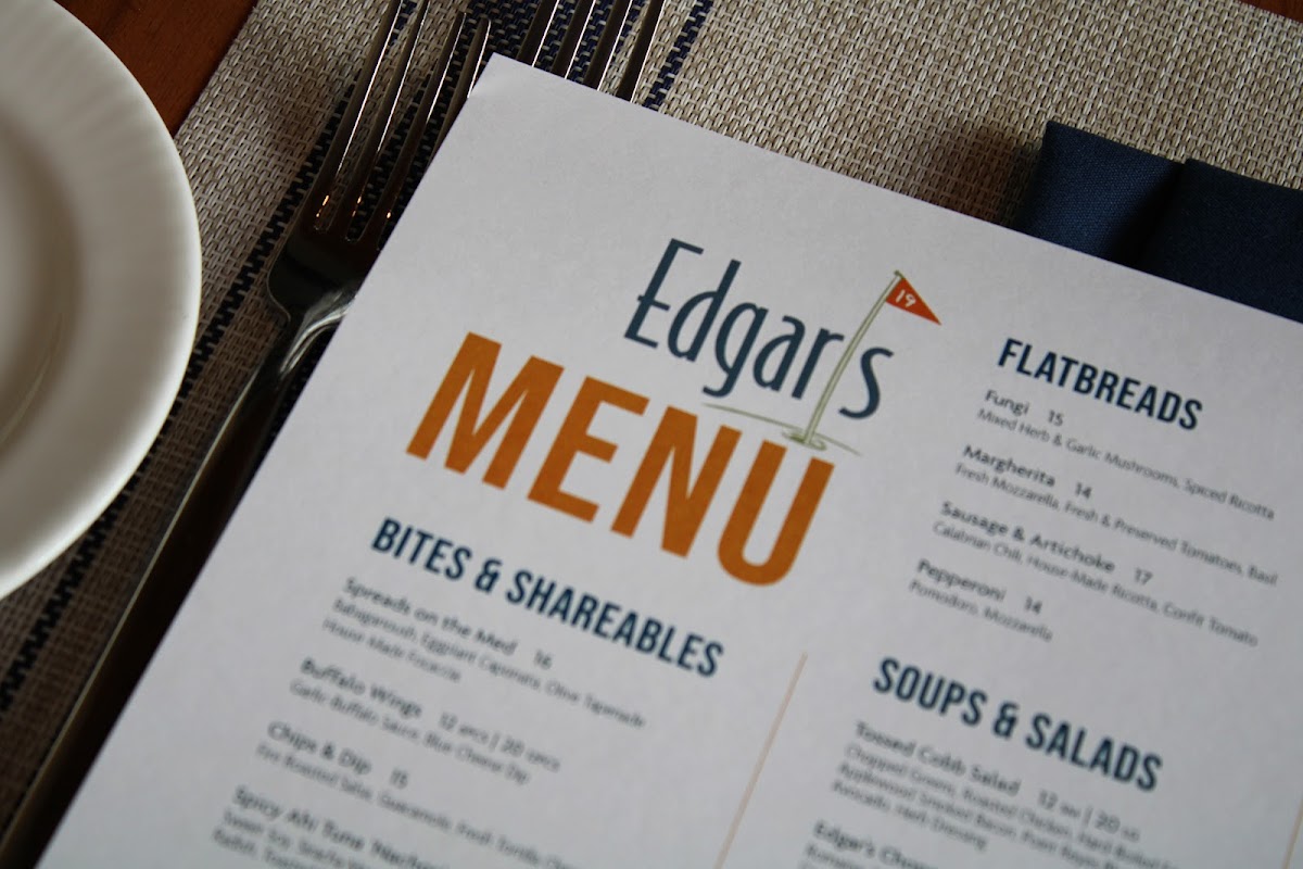 Edgar's Restaurant on Valley Greens Drive offers a menu that effortlessly balances classic comfort with elevated flavors, making each course a highlight. The SOUP & SALADS selection features hearty options like Tossed Cobb Salad, Clam Chowder, Wedge Salad, Lady Betty Salad, and Edgar's Chopped Caesar Salad, perfect for a light start. For something shareable or casual, the FLATBREADS-Classic Margherita, Sausage & Artichoke, and Pepperoni Fungi-deliver satisfying, crisp flavors. Sandwich lovers will appreciate choices like the Chicken Pesto Club, Edgar's Dog, The Reuben, Steak Sando, and Fried Chicken Sandwich, each generously portioned. The BITES & SHAREABLES menu, including The Giancola Special, Chip & Dip, and Nachos Chips & Dip, is ideal for communal snacking. For a street-style twist, the STREET TACOS & QUESADILLAS let diners enjoy a Street Taco individually or convert any taco into a quesadilla. Entrees showcase refined techniques, with Chicken Paillard, Steak Frites, and Pan Roasted Salmon offering satisfying mains. Sweet finishes are irresistible with FAIRWAY TREATS like Clemente's Seasonal Pie - by the slice, Chocolate Pot de Créme, Chocolate or Vanilla Ice Cream, Ice Cream Sundae, and Classic Mud Pie. Weekend specials add an extra layer of excitement: Friday’s Fresh Catch of the Day, Saturday’s Beef Wellington, and Sunday’s Prime Rib ensure that repeat visits always bring something new to savor. Overall, Edgar’s menu caters to a variety of tastes, seamlessly blending approachable favorites with refined dishes that reward both casual diners and culinary enthusiasts.